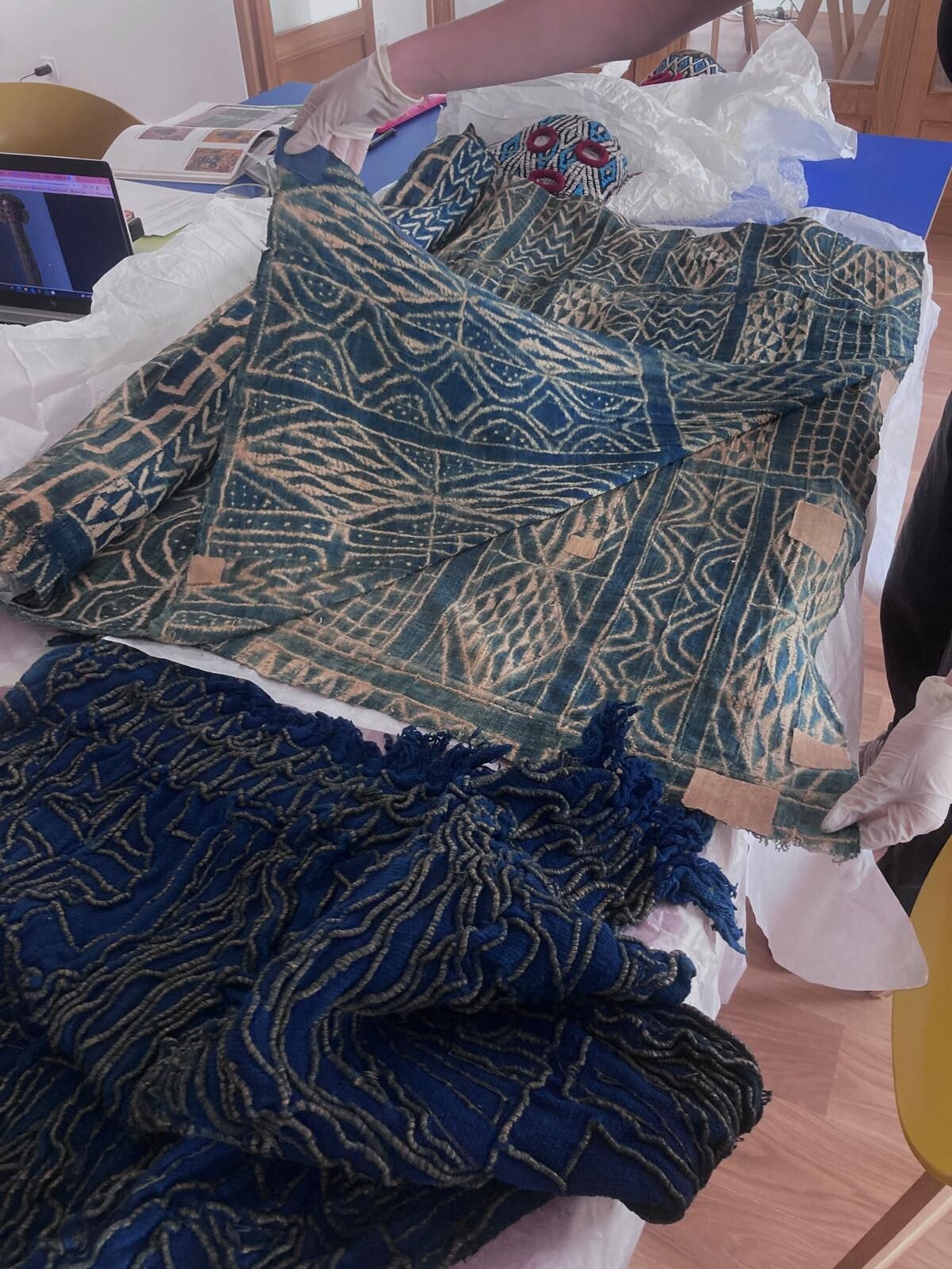 Voici quelques photos de notre journée de travail à la Maison Gacha, notamment certaines pièces de la collection d'arts bamilékés : masques éléphants perlés et tissu royal Ndop à travers les différentes étapes de sa fabrication artisanale.
