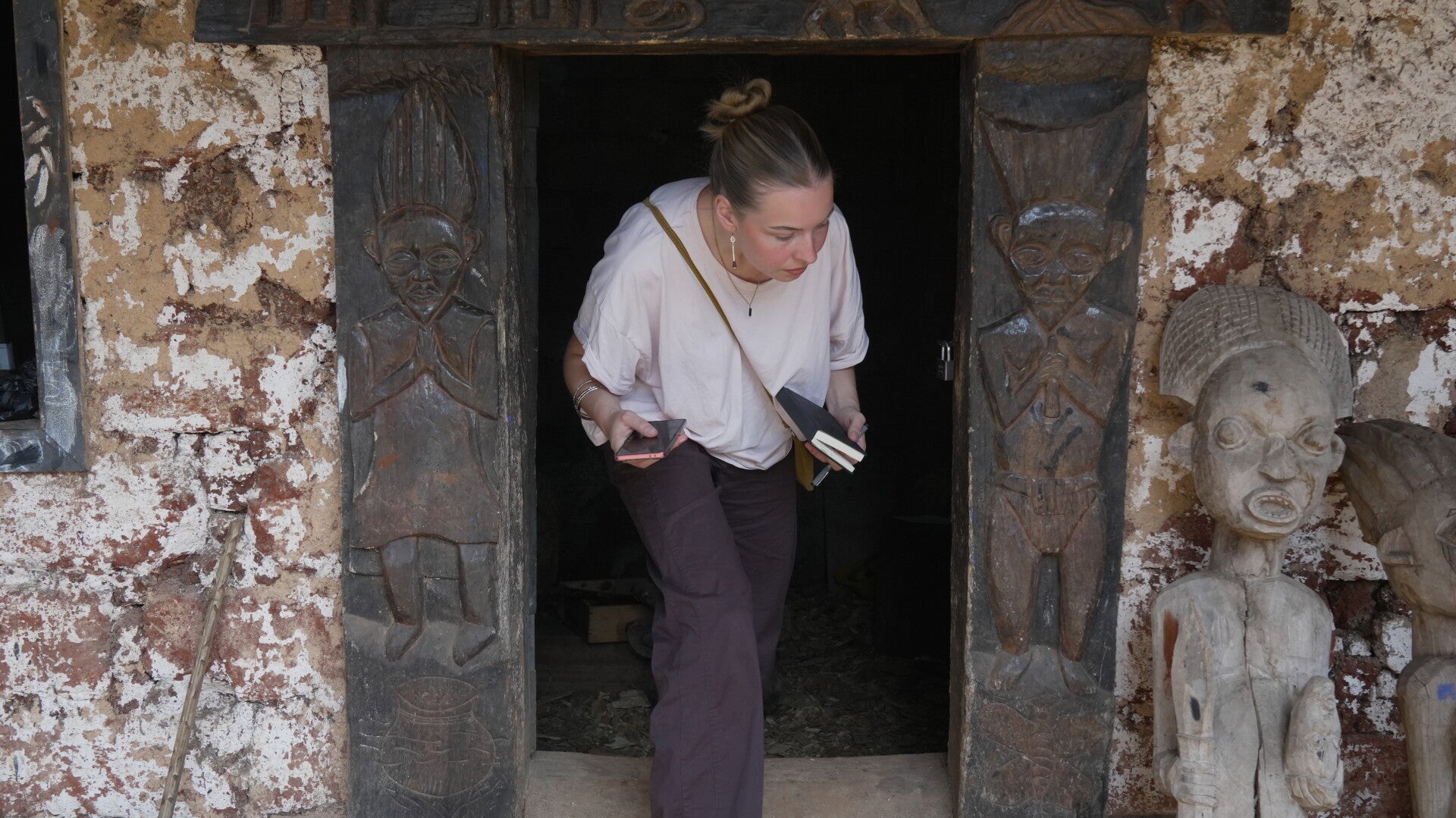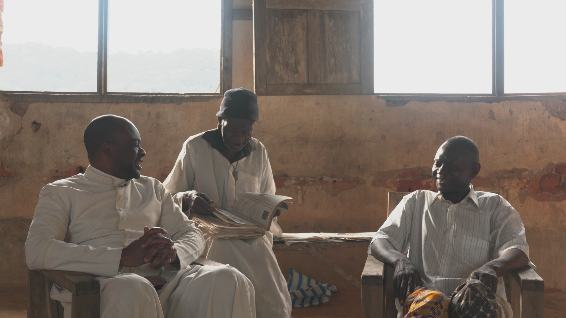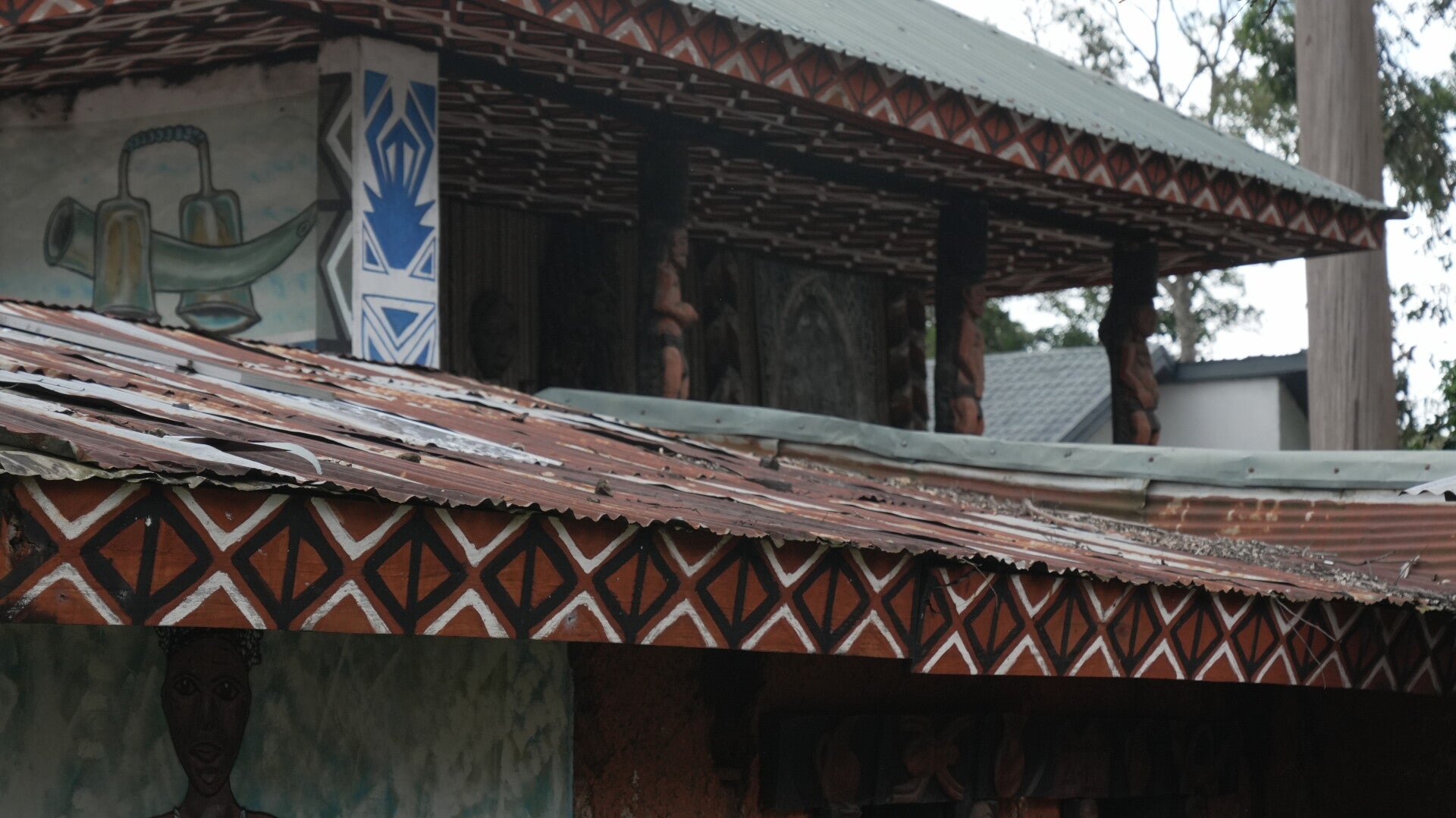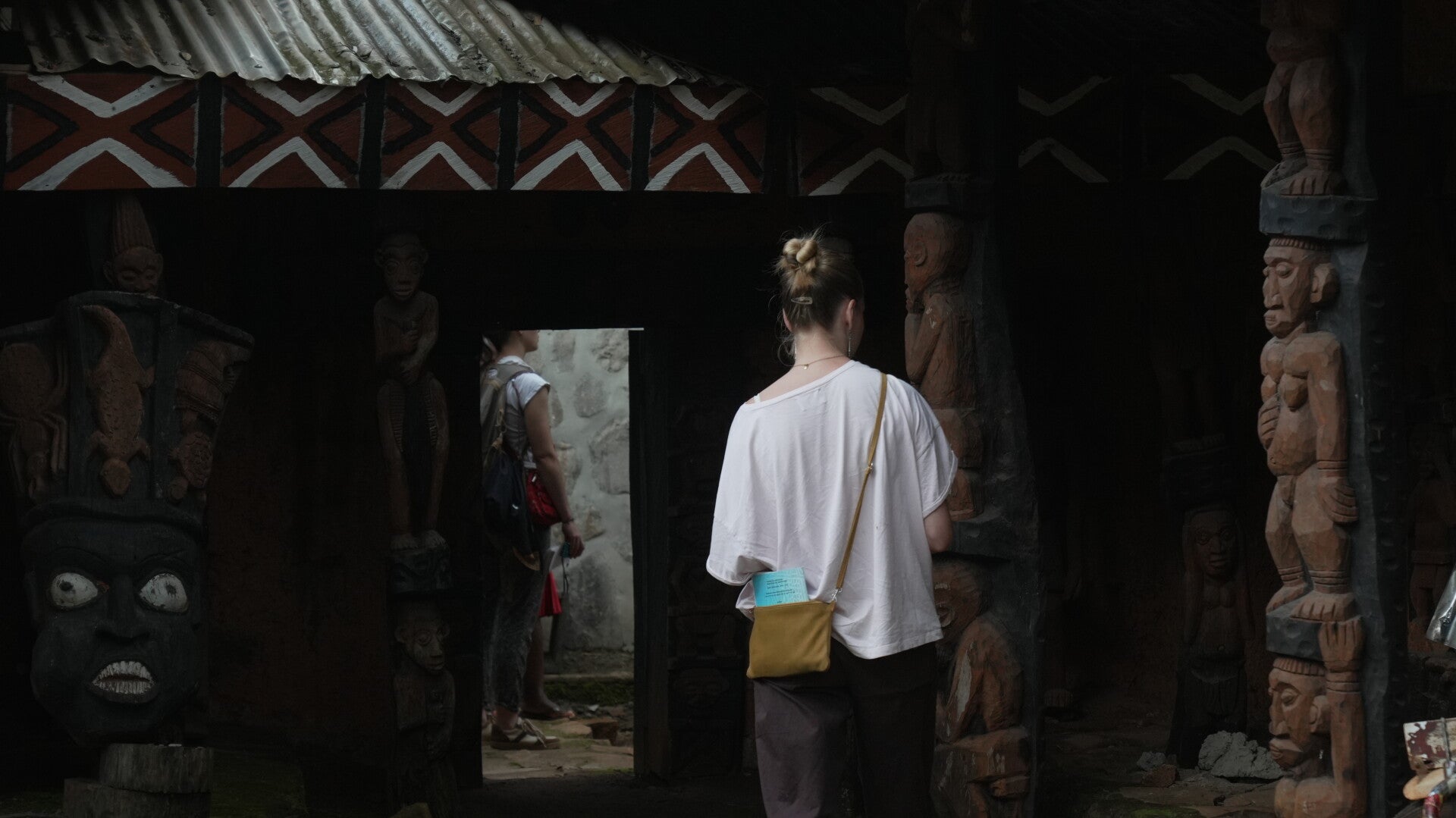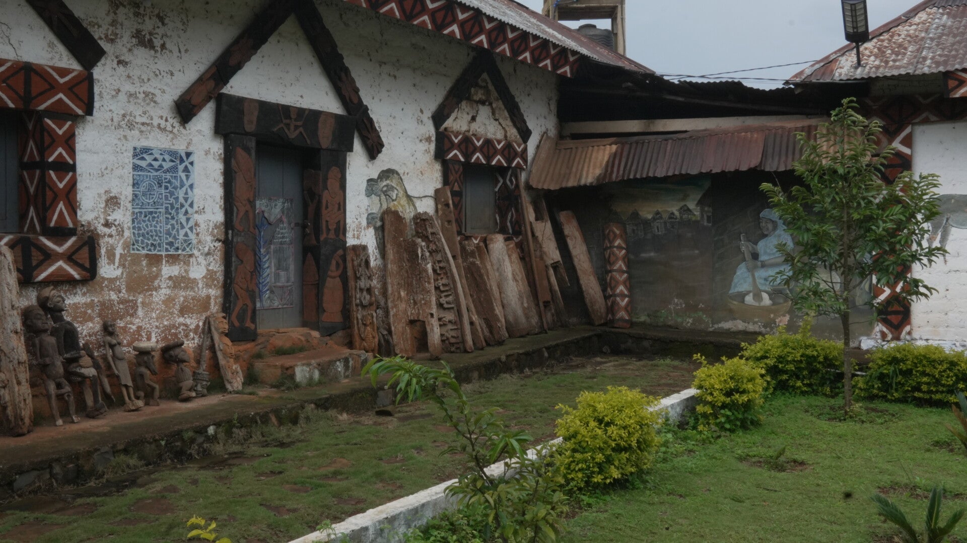 Nous nous sommes rendus à Bafoussam, la capitale de l'ouest, pour rencontrer l'équipe de la Route des Chefferies, ONG partenaire du film. Nous avons présenté notre projet à l'ensemble de l'équipe puis avons suivi Ulrich Dimitri KENMEGNE KOM, médiateur culturel à la RDC, pour deux jours de visites guidées à travers les différents espaces muséographiques, appelés cases patrimoniales, sur lesquels l'association a travaillé.