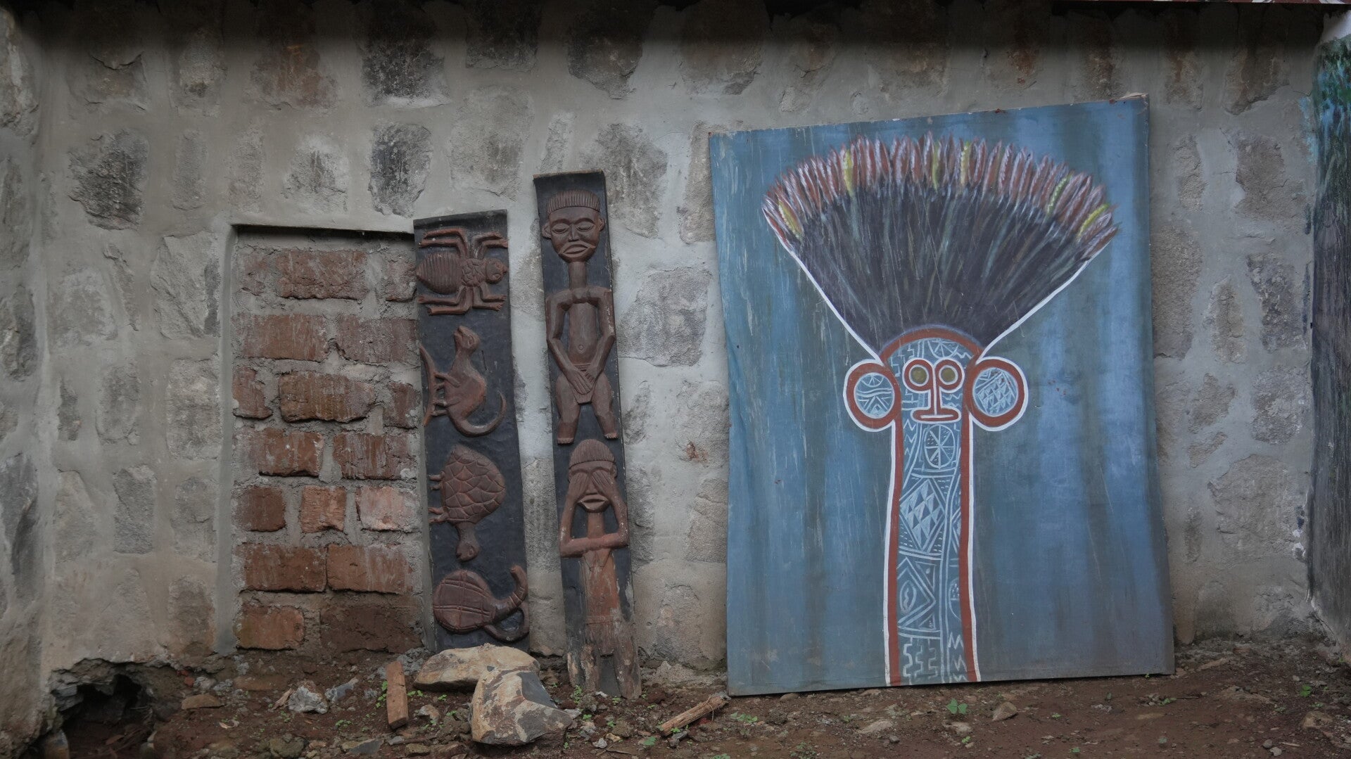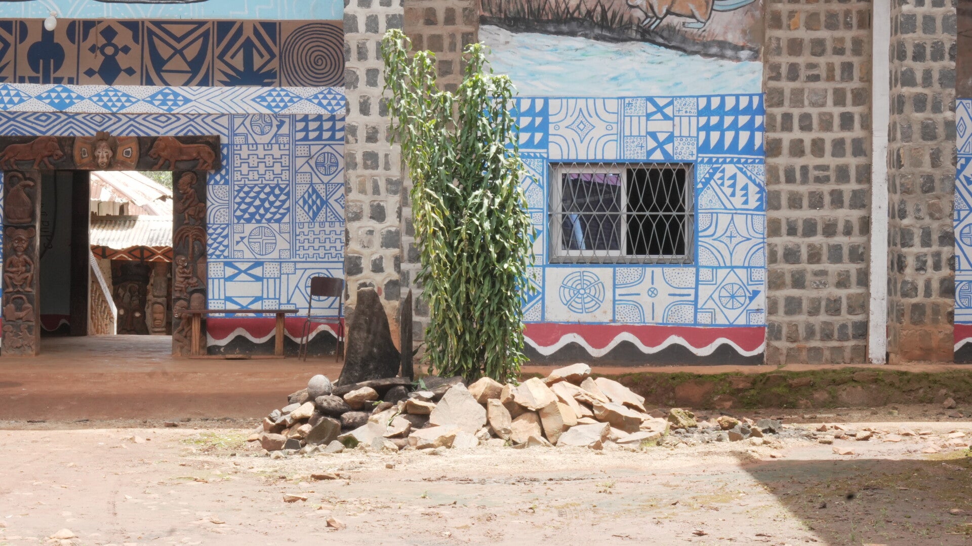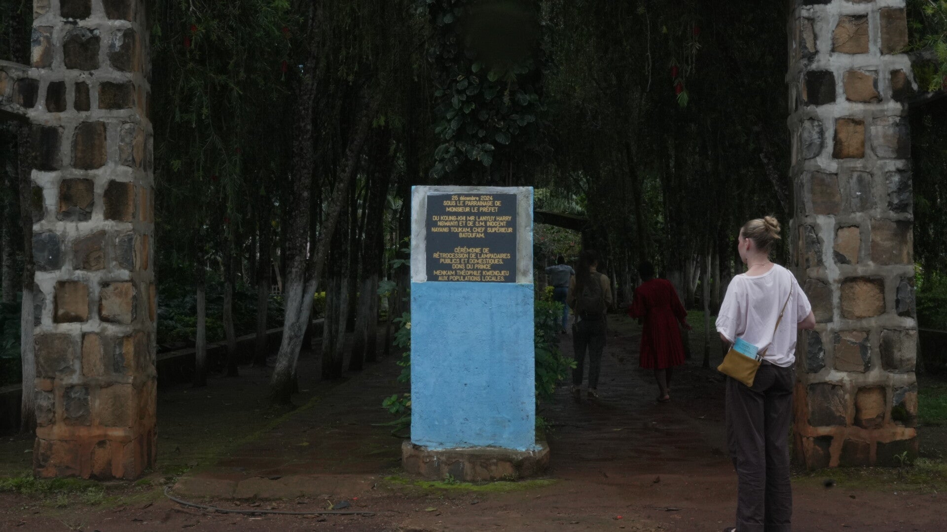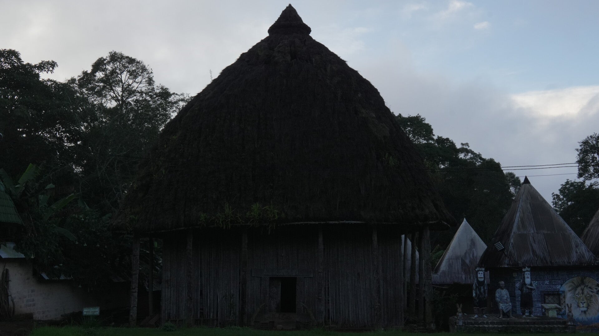 Le Mont Boutanga à Bangoulap a été notre premier arrêt dans l'ouest du Cameroun. Nous avons pu rencontrer l'équipe de la Fondation Jean-Félicien Gacha, ONG partenaire du film. Nous avons commencé par une journée de visites accompagnés de Fidèle Tagatsing Tankou et William Kuihane, tous deux écrivains et animateurs culturels à la Fondation. Ainsi nous avons visité les deux cases patrimoniales du mont, le musée ainsi que les ateliers artisanaux.